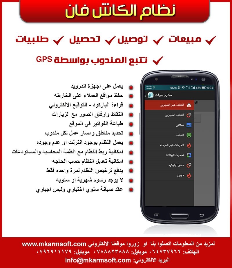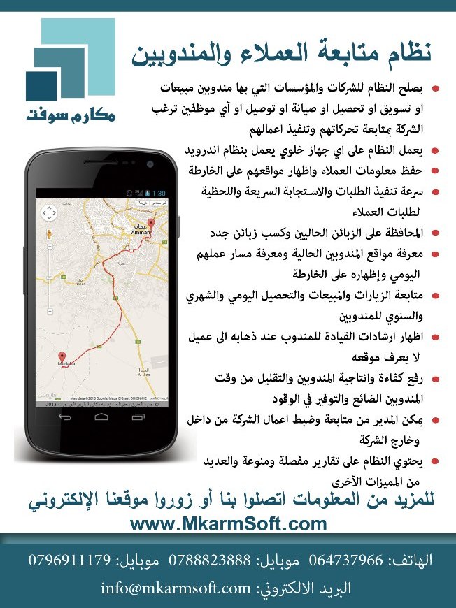 • حفظ معلومات العملاء وعناوينهم وإظهار مواقعهم على الخارطة